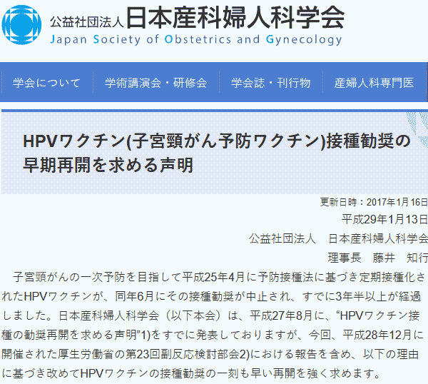 2017年1月13日 公益社団法人 日本産科婦人科学会