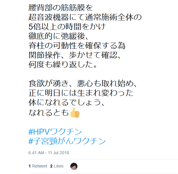 確かにHPVワクチン接種後に体調を崩された方々が産婦人科医である私の外来を受診されることはありません。しかし実際に患者さんを診られている医師も原因探しよりも地道に運動療法や心理療法を続けることの大切さを伝えています。https://t.co/miGBPwp2s1 https://t.co/4IbgGAbrTM
